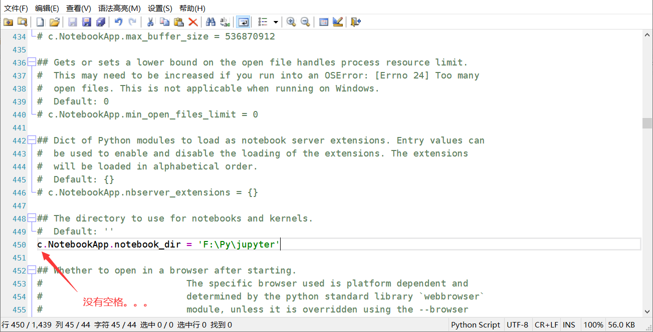 甭管你什么系统这一句总得运行吧,运行之后生成了一个配置文件,按照linux的尿性当然是放在了~/.jupyter/目录下有个叫jupyter_notebook_config.py。