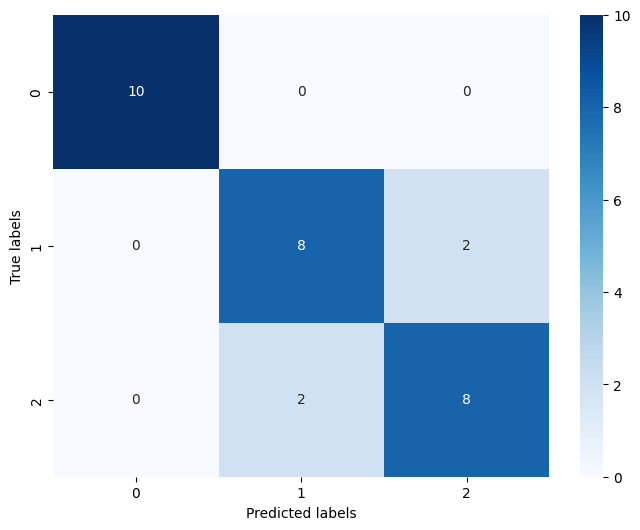 使用 Sklearn 实现鸢尾花分类,根据鸢尾花的花萼和花瓣大小将其分为三种不同的品种。