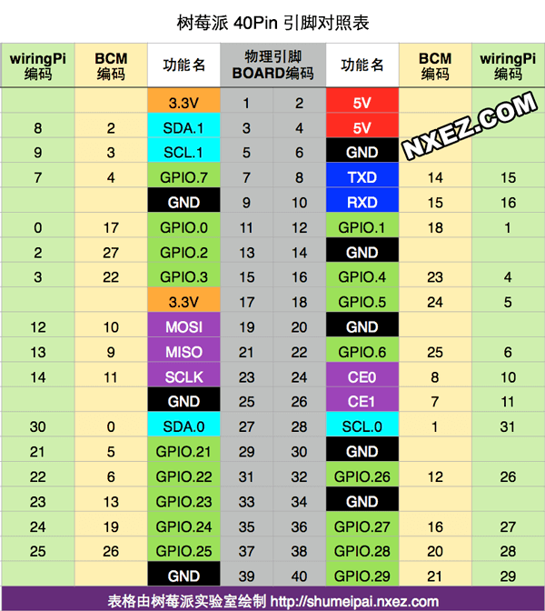 树莓派的引脚图。